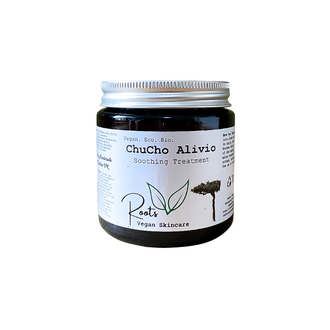 ChuCho Alivio is a natural balm for use on cuts, wounds, bites, stings and bruises. Made with ingredients with soothing and healing properties - myrica berry wax, organic African cocoa, coconut butter, macerated calendula (marigold flowers macerated in high-oleic sunflower oil, French lavender and Somali myrrh