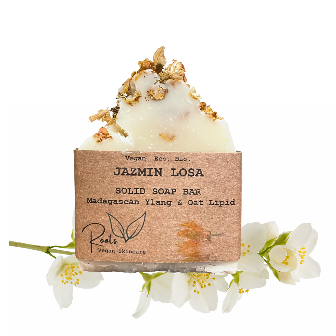Jazmin Losa Bar is our most exotic bar yet! It is suitable for most skin types and made with nourishing ingredients such as macerated calendula extract, oat lipids, Egyptian jojoba bean liquid wax and African coconut as well as Russian clary sage and Madagascan ylang essential oils. This bar can be used on the body and hands.