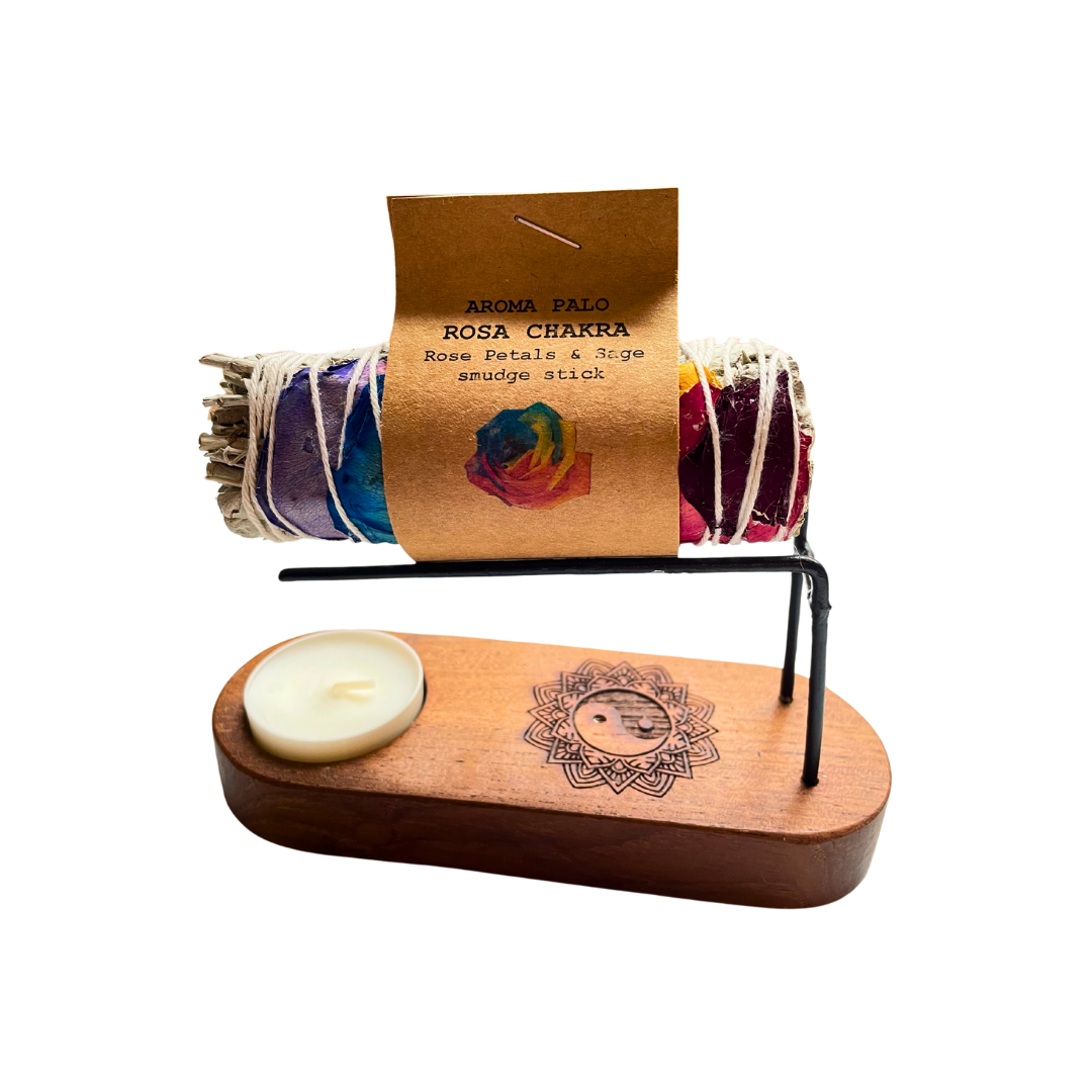 Our Aroma Palo Set comprises of your choice of smudge stick, Eco tealight and our teak wooden Yin & Ylang Heater.
