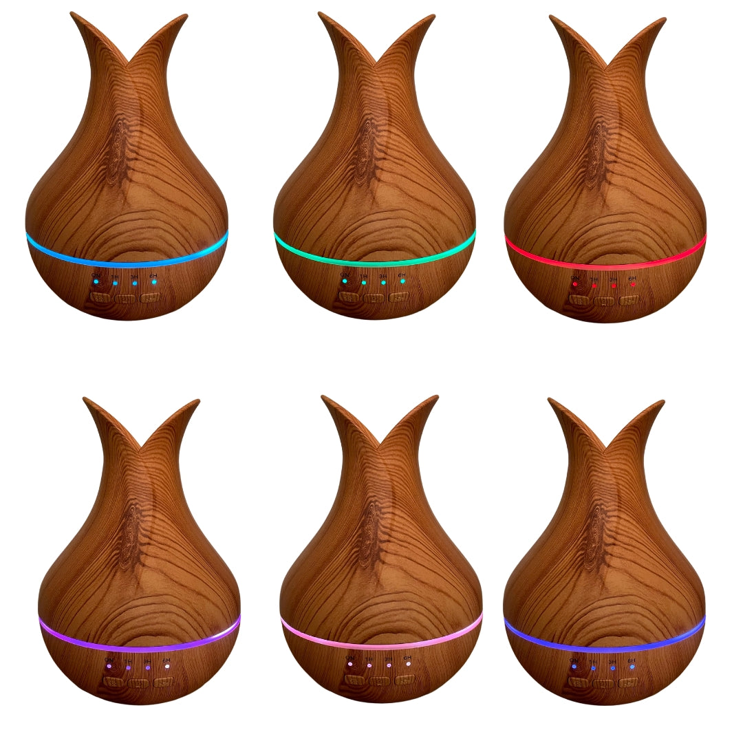 Our Madera Atomiser uses ultrasonic waves to instantly vaporize water and essential oil in the tank, to produce a cool, dry fragrant mist. It provides a flameless and smoke-free way to fragrance your room or office. Just add some drops of your favourite essential/fragrance to water for an instant aroma experience. It also lights up in five different colours!