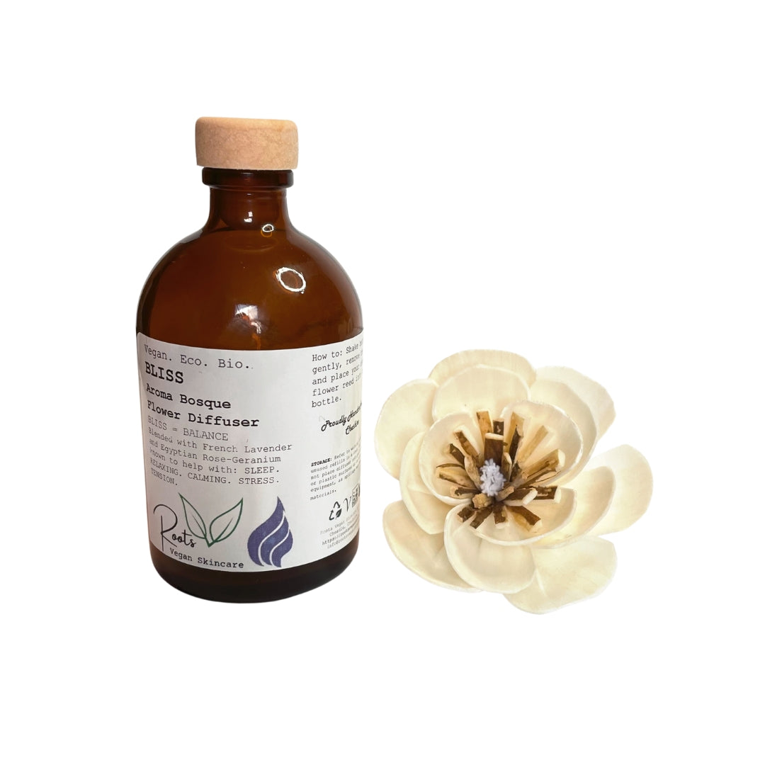 Our ChuCho Bosque Diffusers are a new twist on reed diffusers - safer for homes with pets. Instead of reeds we use beautiful wooden flowers to diffuse your chosen blends and we ONLY use pure unadulterated aromatherapy oils, the same ones we use in our skincare for optimum quality! Specific plant species, country of origin, plant parts and percentages of essential oils have been carefully chosen by our in-house aromatherapist to be sure they are pet-friendly! Added to this we use the only VEGAN base on the market! After a few weeks your flower will open even more and take on the beautiful golden colour of the oils!