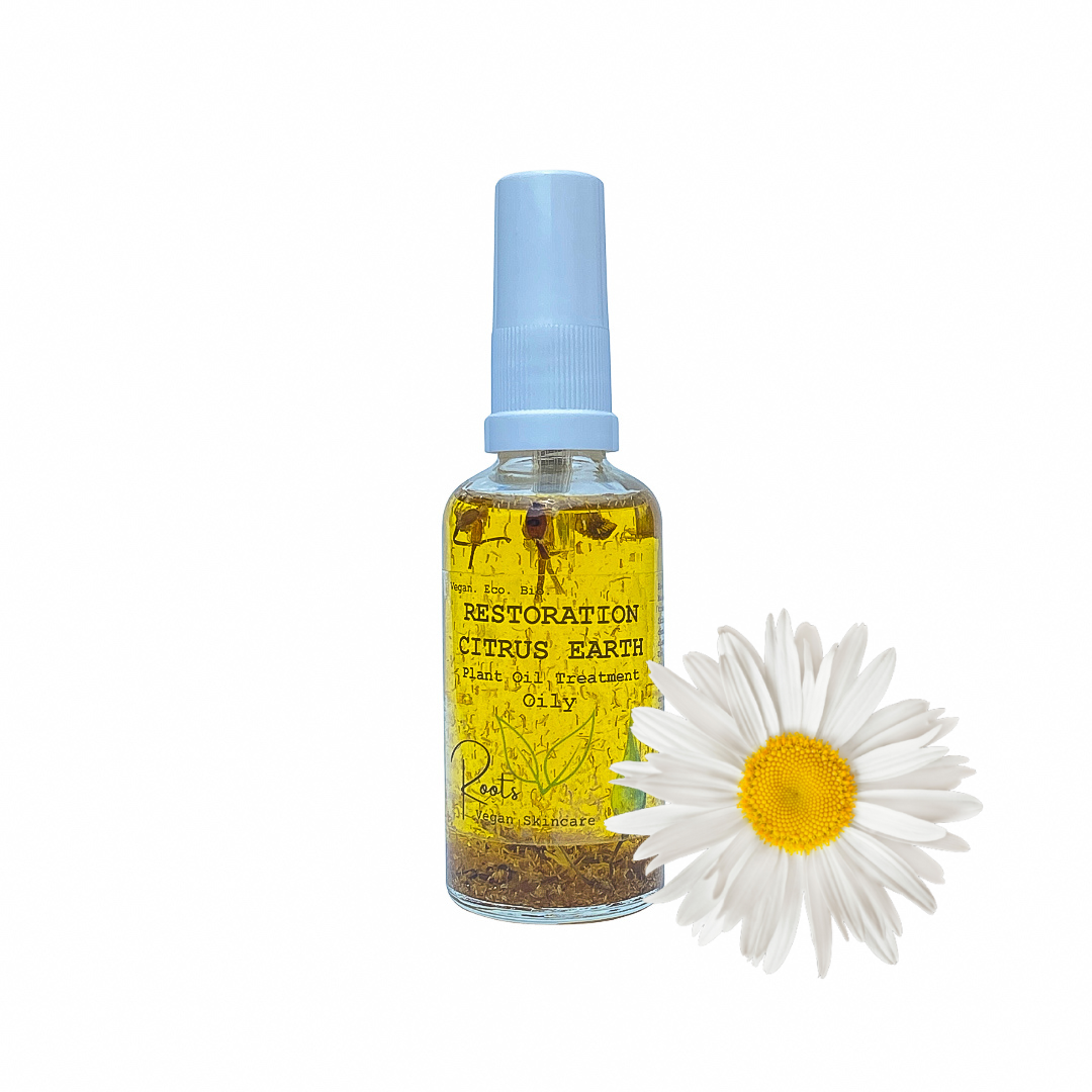 CITRUS EARTH Restoration - Citrus Earth hair and skin treatment helps to nourish damaged skin, tresses and neglected scalps. Made with maximum amounts of vitamin E and Rosemary Co2 extracts for their antioxidant properties, plant silk from sugar beet to soften and improve feel, oat lipids to repair damaged skin, hair and scalp and anti-comedogenic oils of Egyptian Jojoba & Austrian Thistle as well as Indonesian Patchouli, Egyptian Petitgrain & Roman chamomile essential oils and chamomile flowers for their sebum balancing properties.