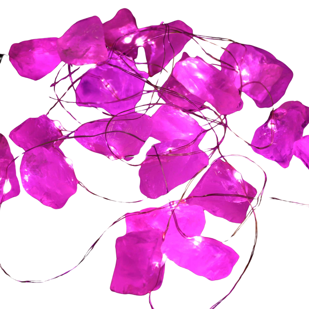 Rose Quartz - Embrace the calming, affectionate aura of Rose Quartz. These lights cast a warm gentle, rosy glow that fosters harmony, love, and emotional healing. Ideal for creating a cosy, comforting and heart warming ambience.