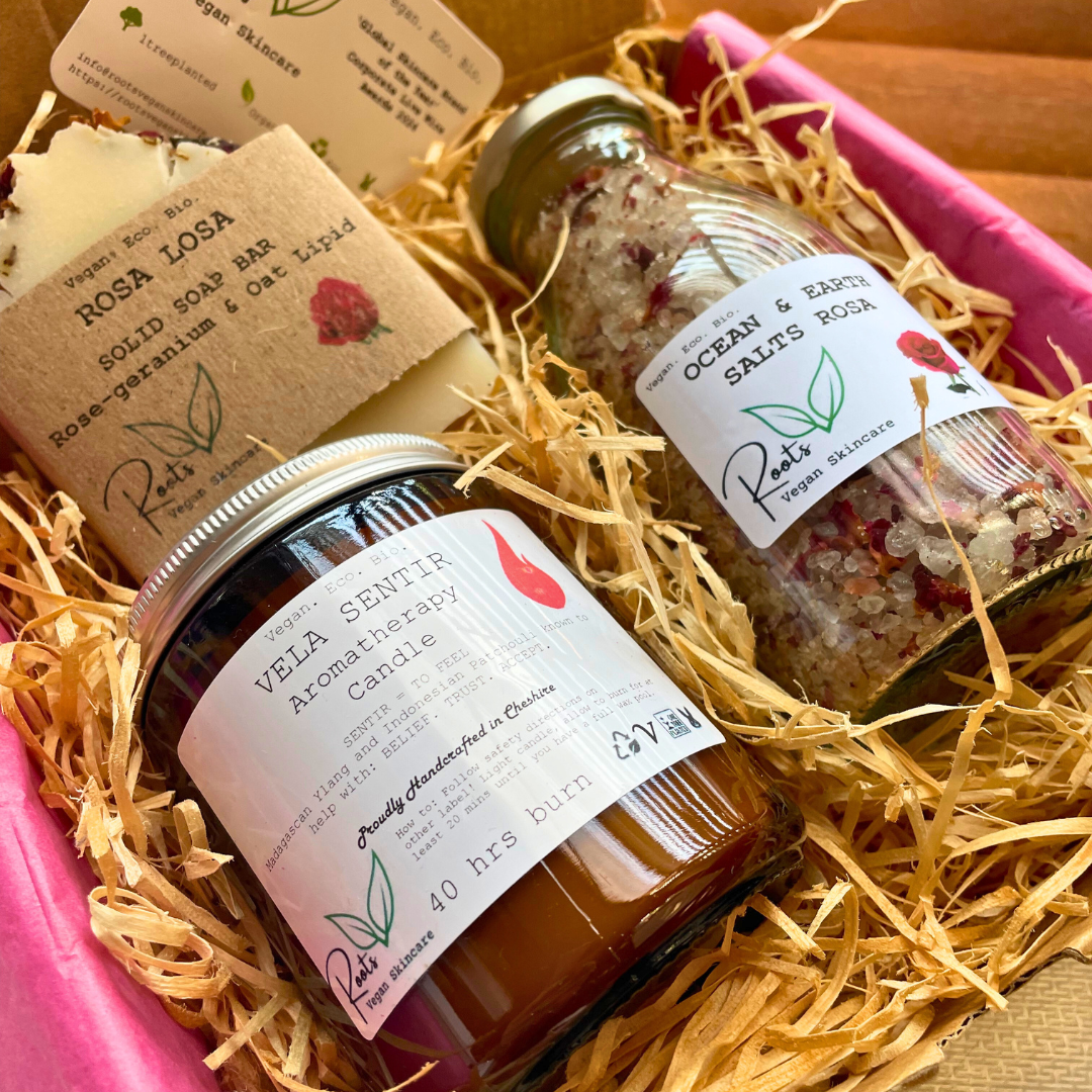 250g Ocean & Earth Soak of your choice and 200g Vela Crystal Candle of your choice.