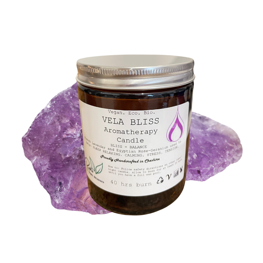Our Vela candles are handcrafted with only the finest soy wax and essential oils, and embellished with natural crystals and gemstones, nothing more!