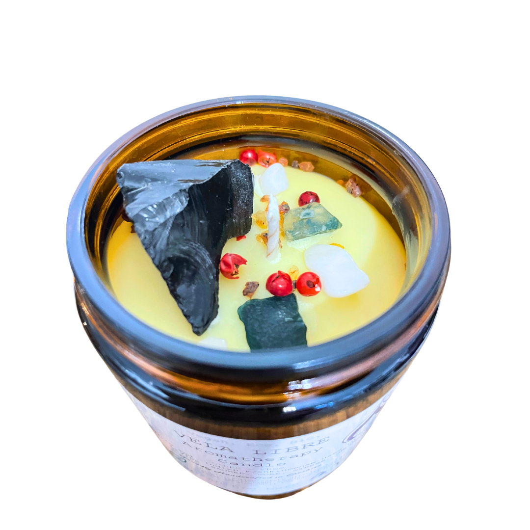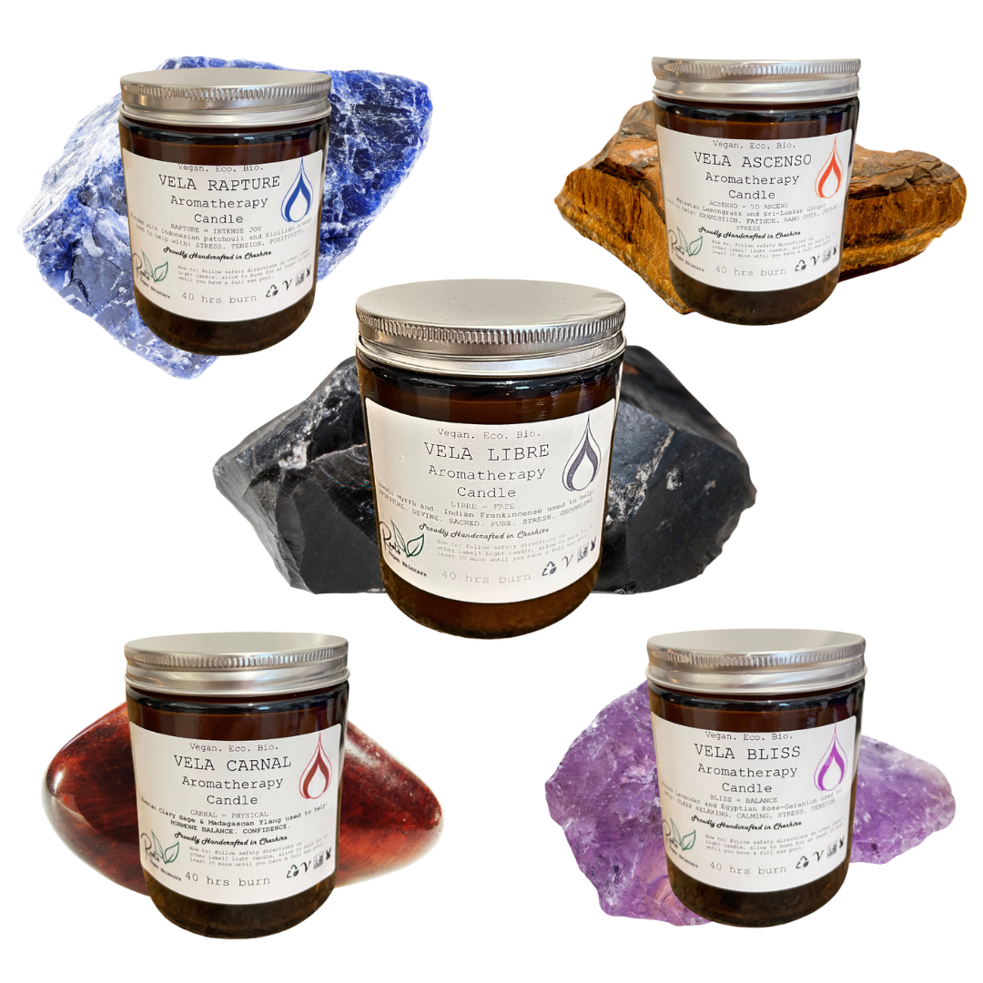 Our Vela crystal candles are handcrafted with only the finest soy wax and essential oils and embellished with natural crystals and gemstones, nothing more! Turn your home into a therapeutic oasis! x7 to choose from.