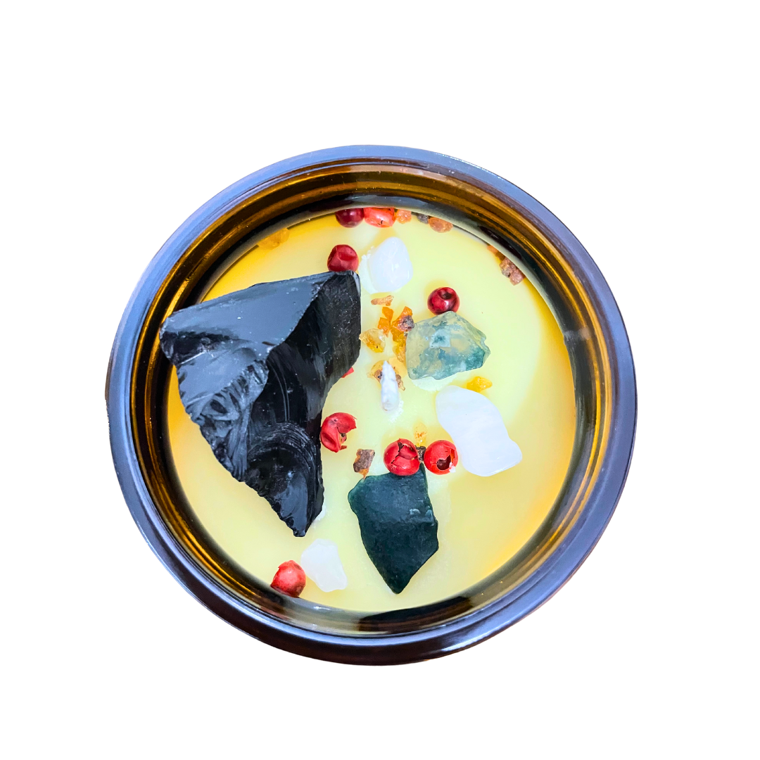 Our Vela crystal candles are handcrafted with only the finest soy wax and essential oils and embellished with natural crystal and plants, nothing more!